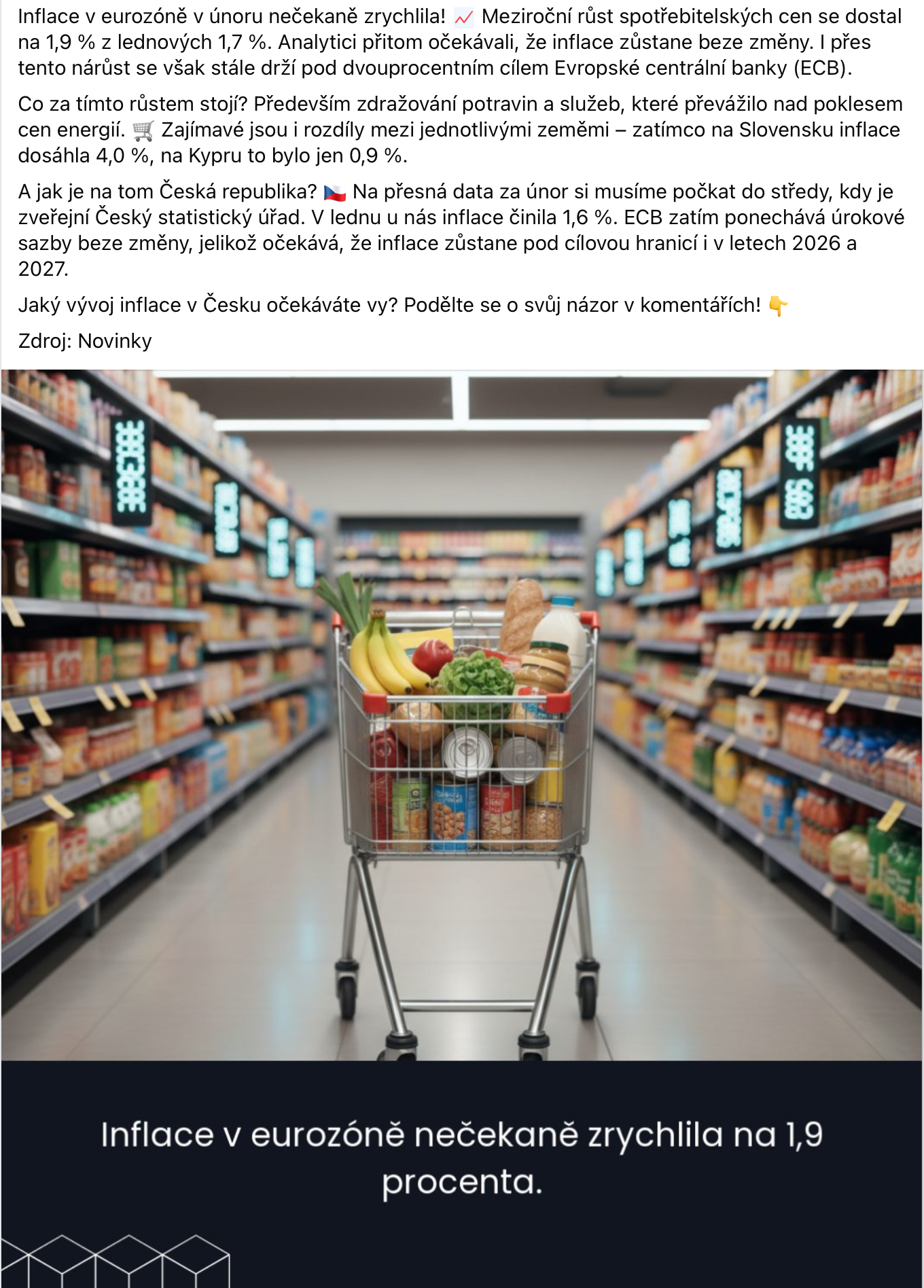 Příspěvky o aktualitách z trhu, edukační příspěvky a rady pro vaše sledující z oblasti financí.